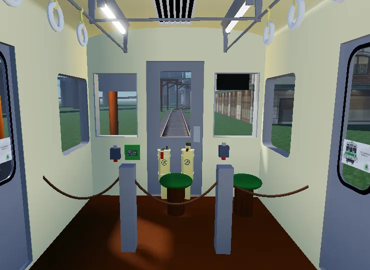 東広急行電鉄さんでは、なんと中間改造車が登場しました。簡素な改造具合で、なんと簡易運転台と客室の仕切りはロープ一本だけです。