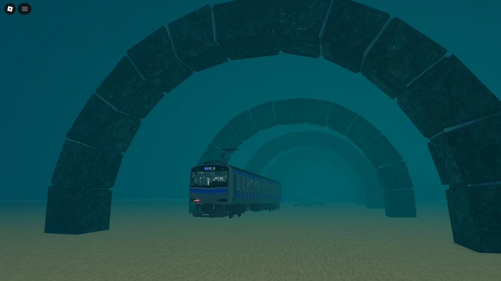 線路に導かれて海の中に入っていくと、海底神殿のような駅に着きます。